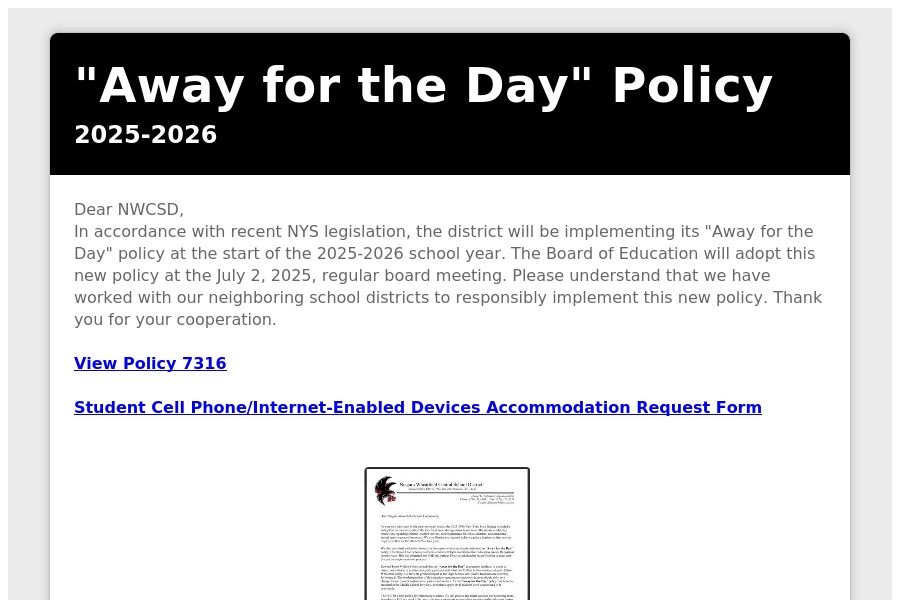 "Away for the Day" Policy 2025-2026 Dear NWCSD, In